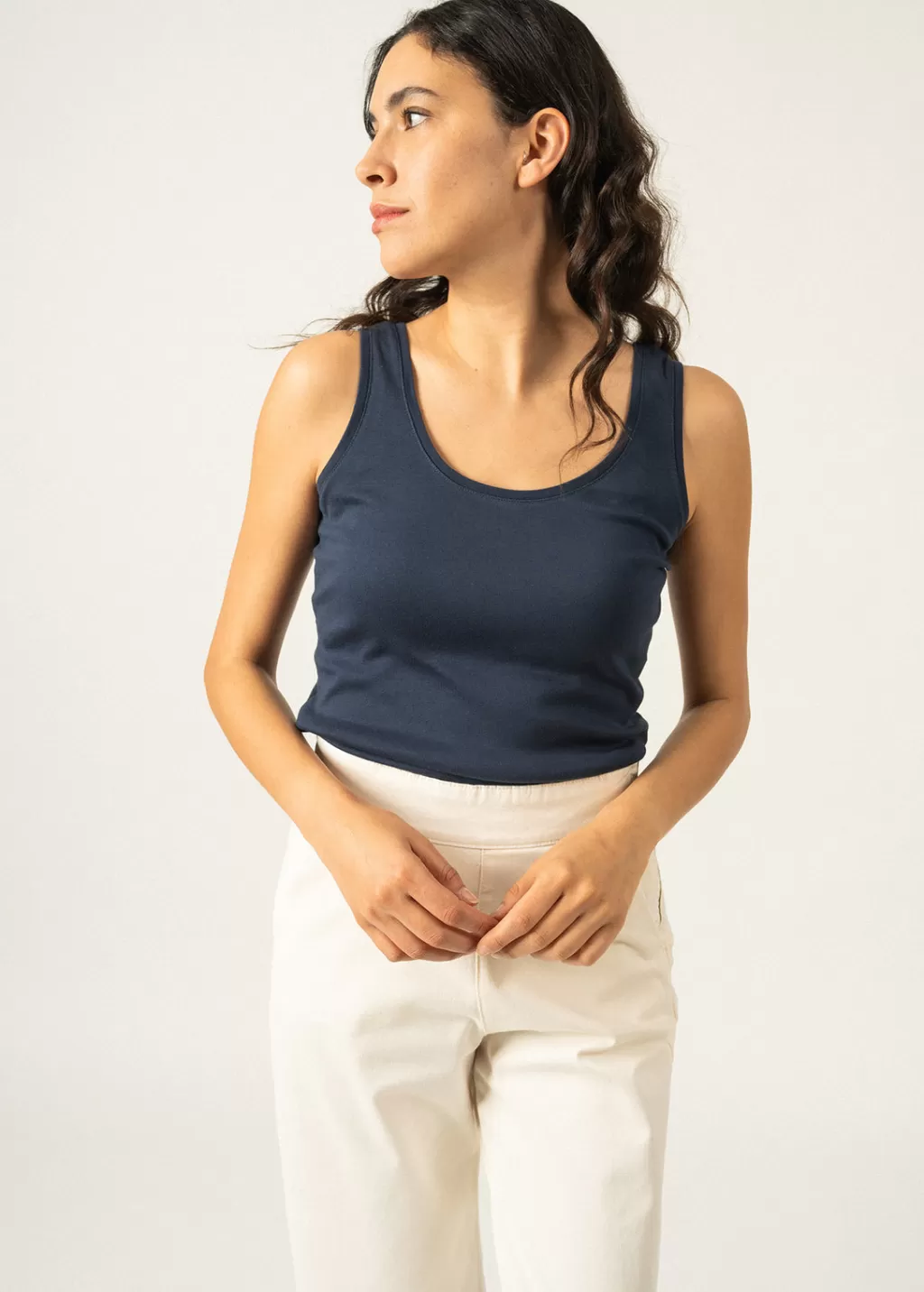 The Bastia tank top is a classic piece, easy to wear. With its large colour range, it is easy to match and can fit in most oufits. With its 1×1 rib knit construction, it can adapt to different body types.- 1×1 rib knit