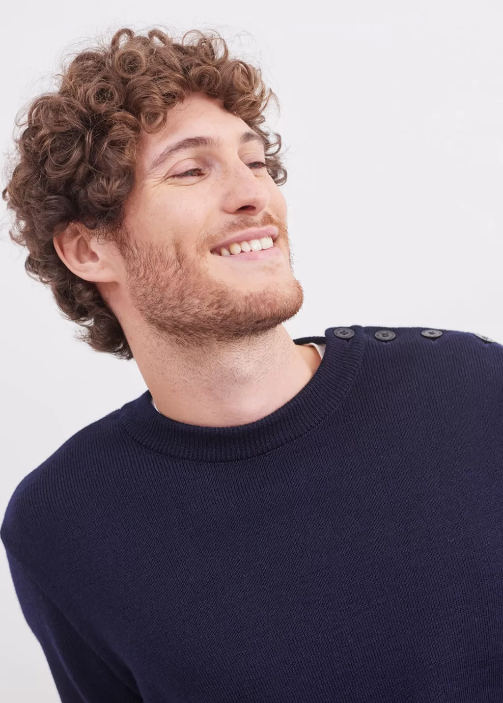 Epitome of SAINT JAMES’ identity, the Marinier jumper gathers the elements of traditional sailor jumpers : tight knitting, neck and buttoning. On this reference, double rib trim has been added on cuffs to keep you warm and comfortable.- 1×1 rib knit