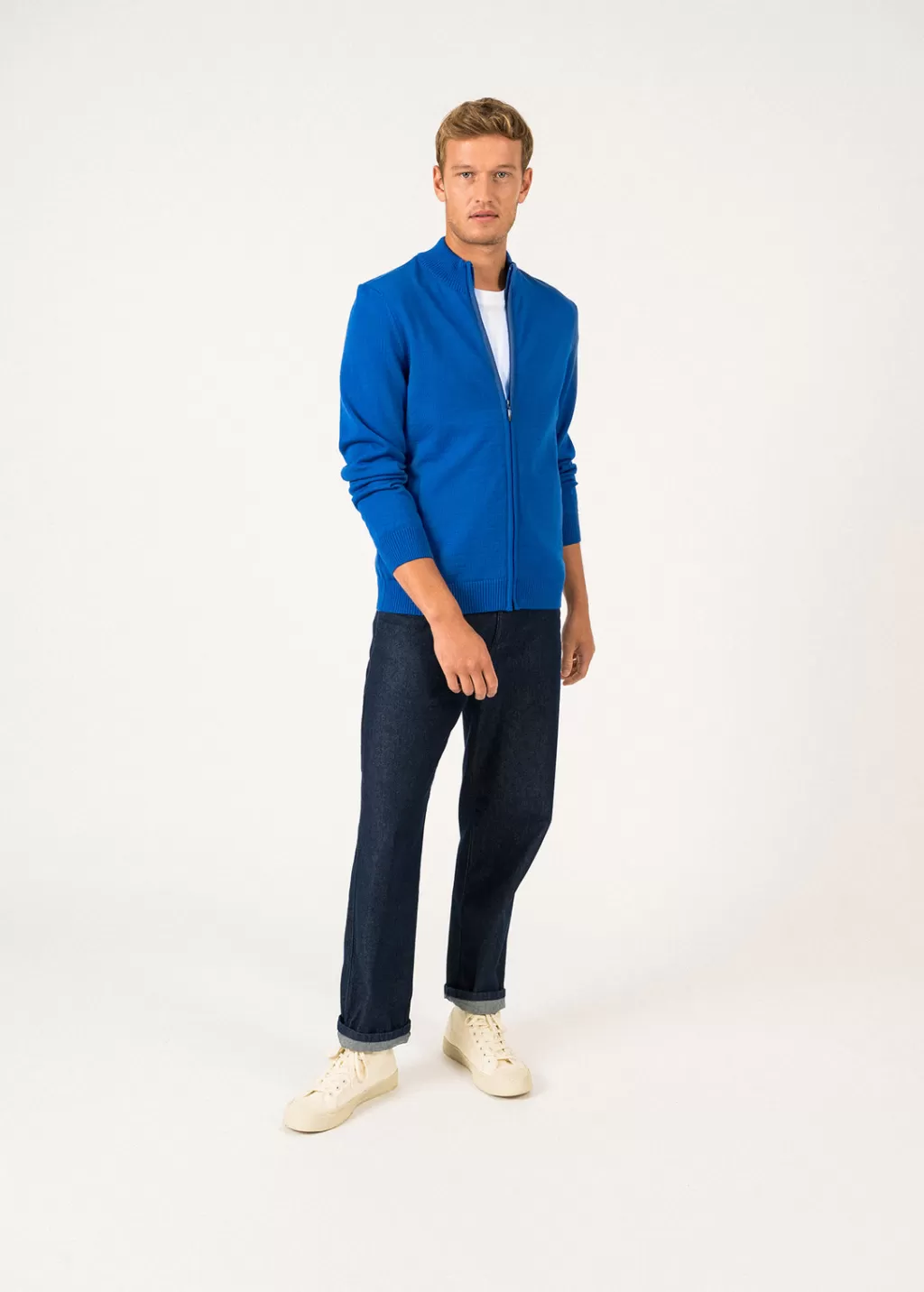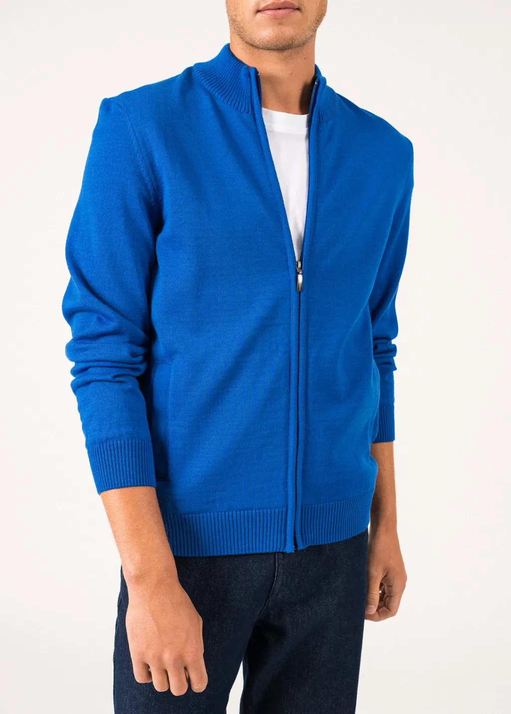 The Colorado cardigan is a sober, timeless piece. Characterised by its zip fastening and welt pockets, it is practical and easy to wear. The inner collar has a contrasting trim, for an elegant touch.- Jersey