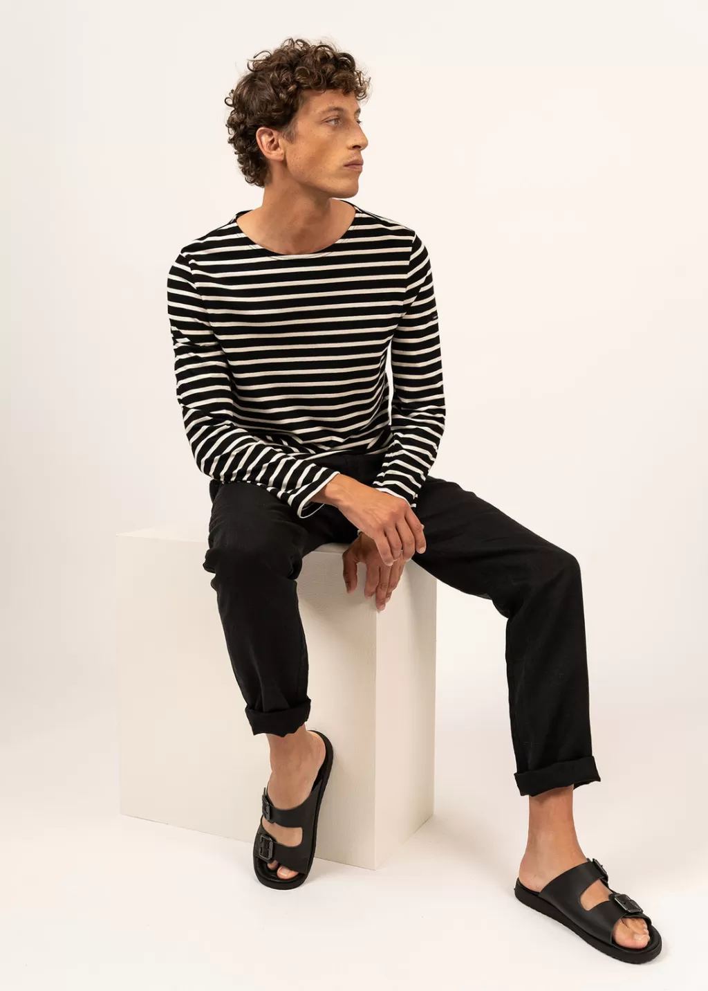Cheap Saint James Minquiers unisex striped sailor shirt Noir/ecru