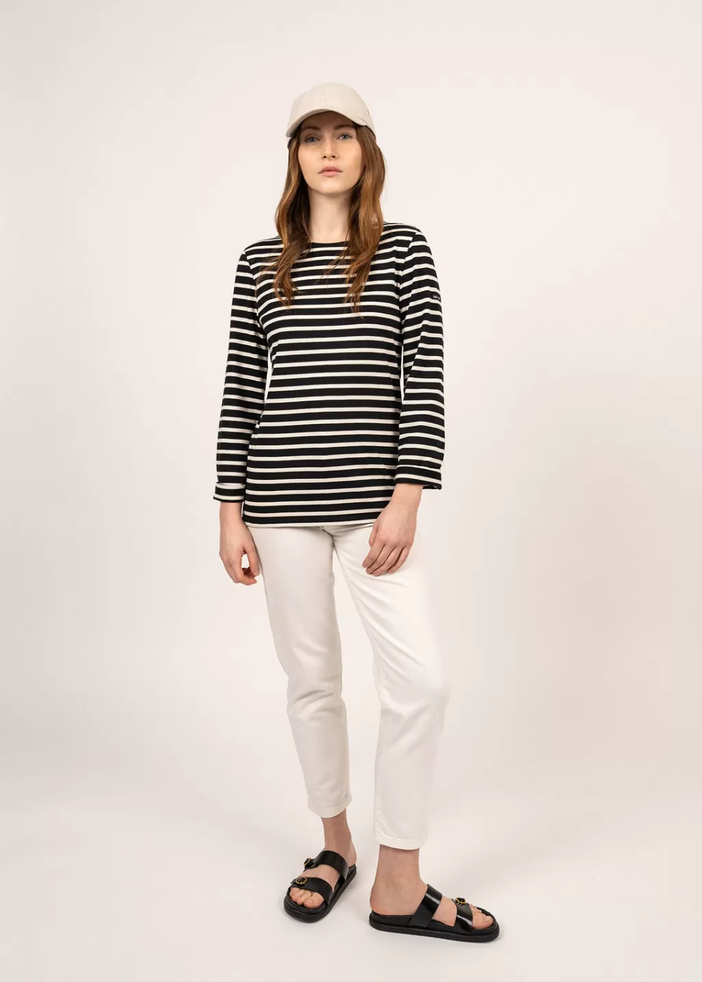 Timeless, graphic and casual, the striped sailor shirt is a state of mind, the cornerstone of the French art de vivre. The Minquiers model is light and comfortable, easy to match all year long.- Regular fit