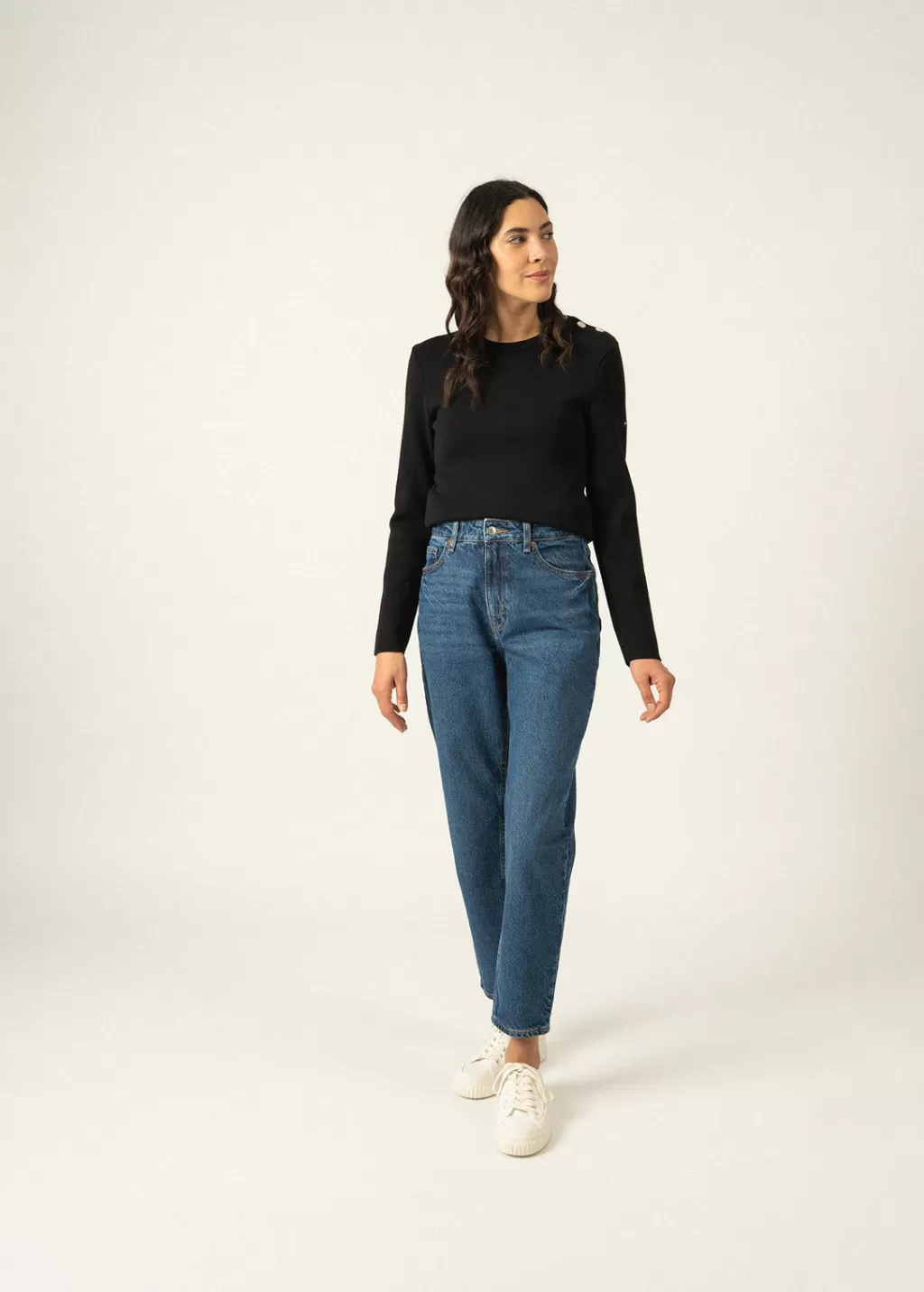 Lighter and softer than the authentic sailor jumper, the Marée jumper still features all its iconic charactesristics : slim fit, round neck and shoulder buttoning. A timeless, elegant piece.- 1×1 rib knit