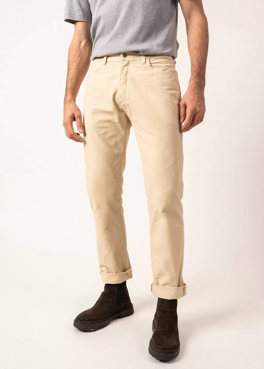 The Augustin trousers are straight-cut trousers made of cotton twill. Its straight cut gives it a modern look, more urban than our traditional chinos.- Canvas trousers