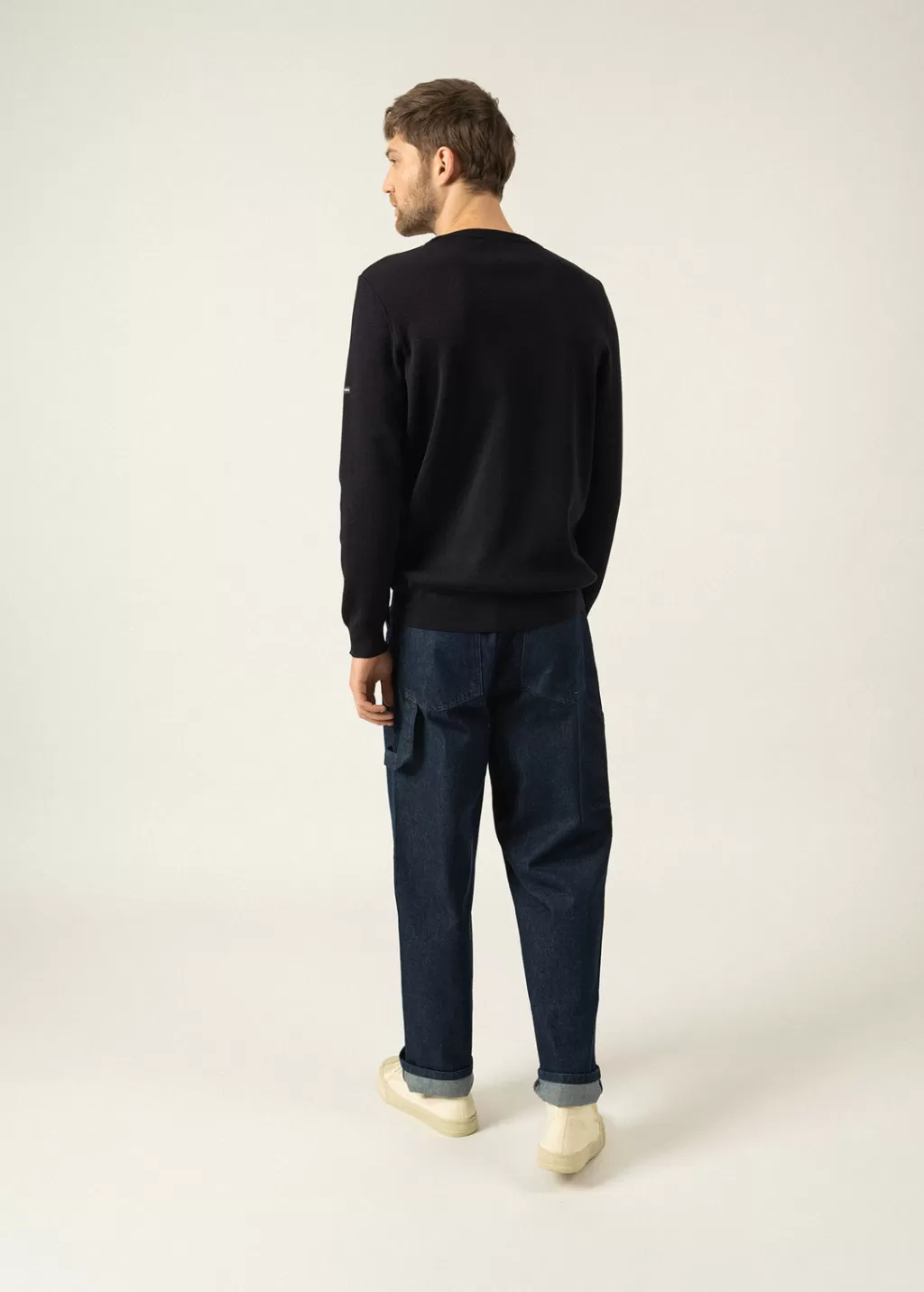 The thin wool knit jumper is a must-have in every man’s closet. SAINT JAMES has created two versions of it, one V-neck for the Cuirrassé, and one round neck for the Cruisier. Made in soft wool, they are both comfortable and warm, for a timeless, elegant style.- 1×1 rib knit