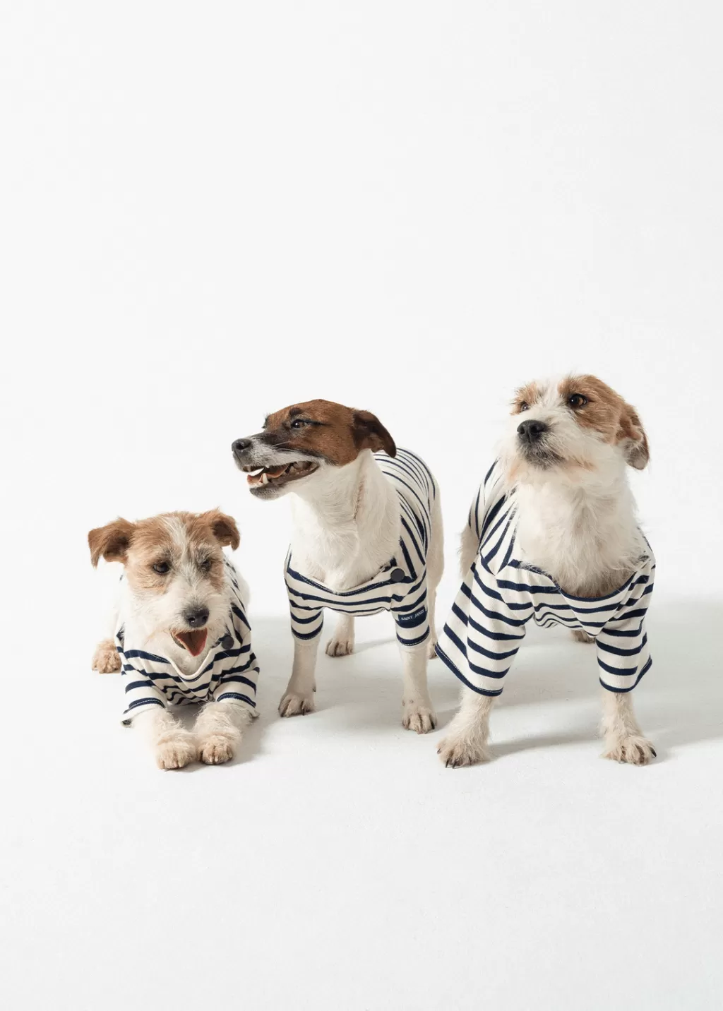 Made in our iconic carded cotton, the “Toutounière” (contraction of French words “Toutou”, which means “doggie”, and “marinière”, “sailor striped shirt) merges our tradition and history to fashion and stylish gimmick. Designed and made in our Ateliers in Normandy, it is a true declaration of love to our roots, enhanced with a touch of lightness and fun. For a perfectly matched look, get yourself a Méridien or Méridame sailor shirt, in ECRU/MARINE !