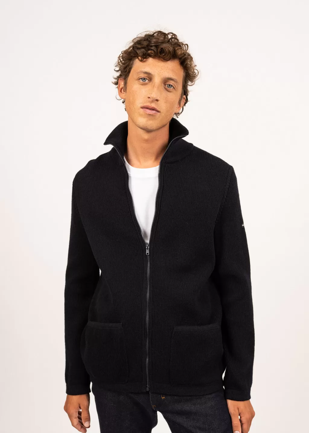 The Quiberon cardigan is a wool cardigan, with a trucker-style neck. Comfortable and warm, it is perfect for the season. The detail on its two patch pockets and buttoned inner pocket makes it a practical, modern piece.