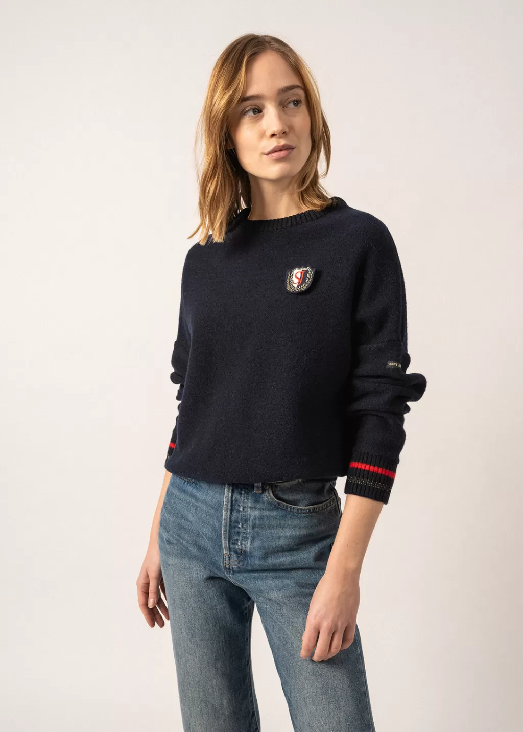 From our back-to-school capsule, this lovely brooch represents the guiding thread of the capsule: a SAINT JAMES badge, inspired by our archives. It will nicely complement a striped shirt or a basic marine jumper, adding a touch of preppy style.- Brooch