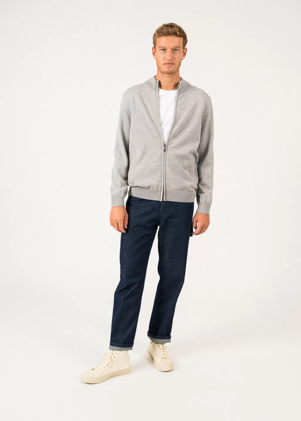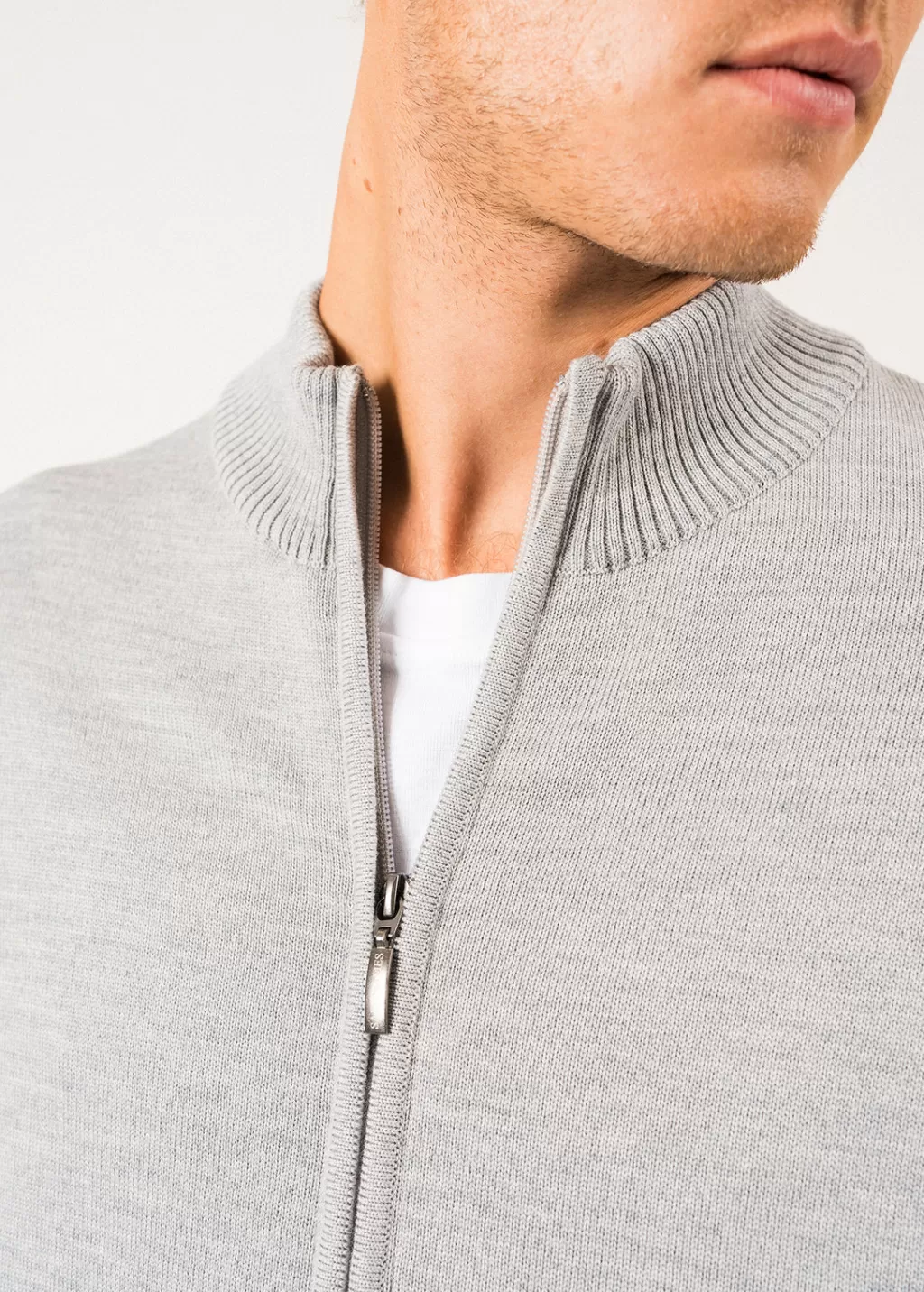 The Colorado cardigan is a sober, timeless piece. Characterised by its zip fastening and welt pockets, it is practical and easy to wear. The inner collar has a contrasting trim, for an elegant touch.- Jersey