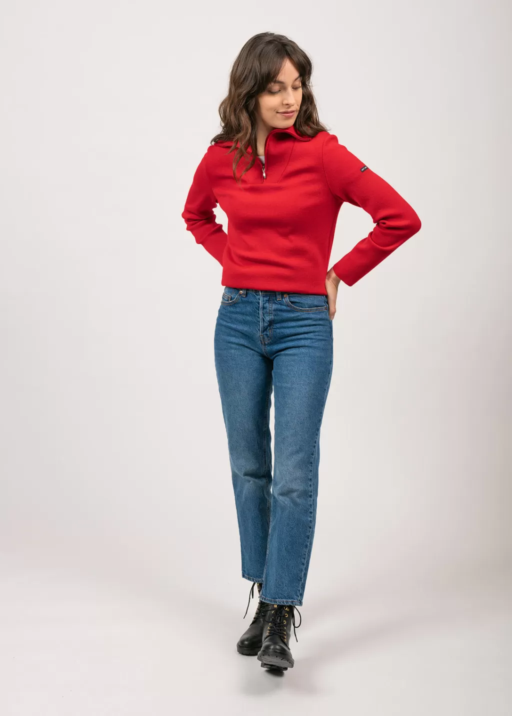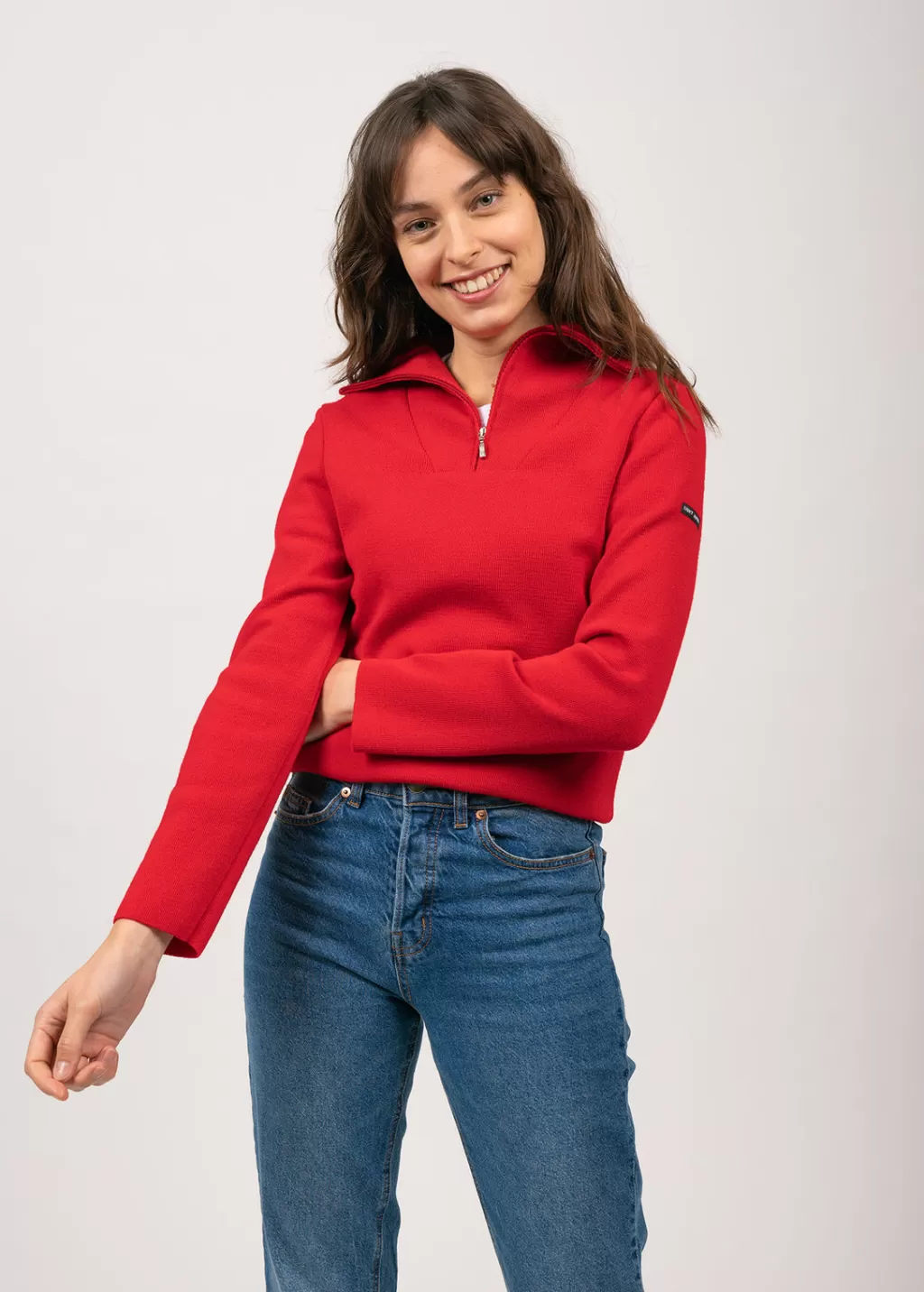 With its casual look inspired by the world of workwear, the Passerelle jumper is a must in our collection. Made of wool in our Ateliers, it is warm, comfortable and durable. We love its masculine trucker collar, balanced by its fitted, feminine cut.- 1×1 rib knit