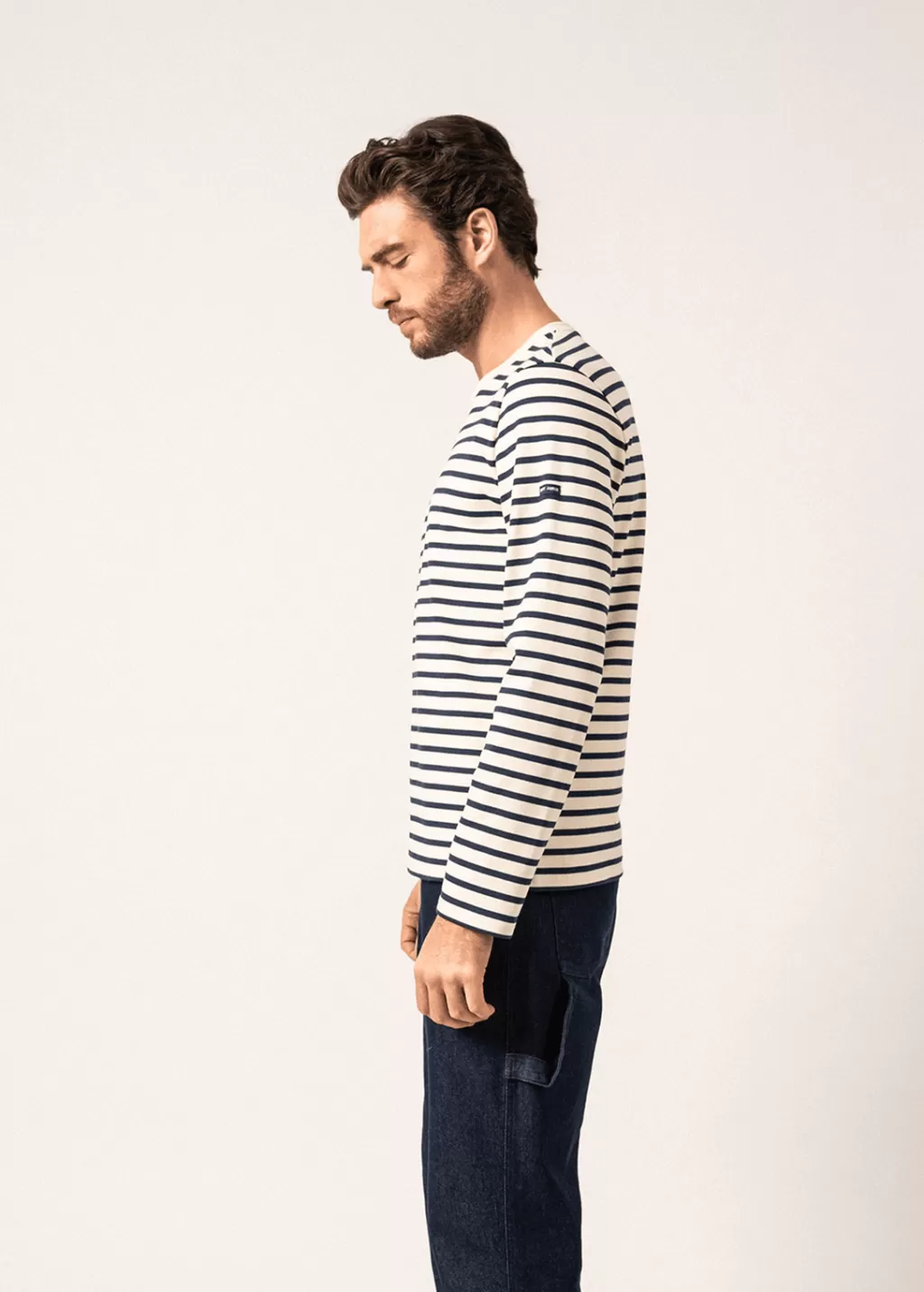 Crafted from cotton interlock, a soft and comfortable material, the Valognes marinière is ideal for those seeking a slightly thicker option than our traditional Minquiers, without opting for carded cotton. A contrasting ribbed collar finishes the model with style.- Interlock T- shirt