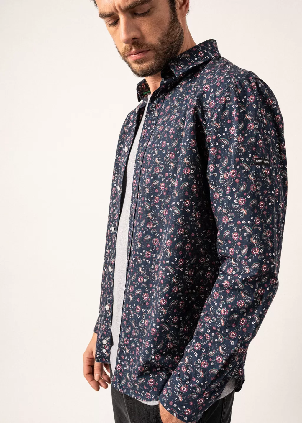 Fashion Saint James Vinny Floral Patterned Shirt Amiral/prune