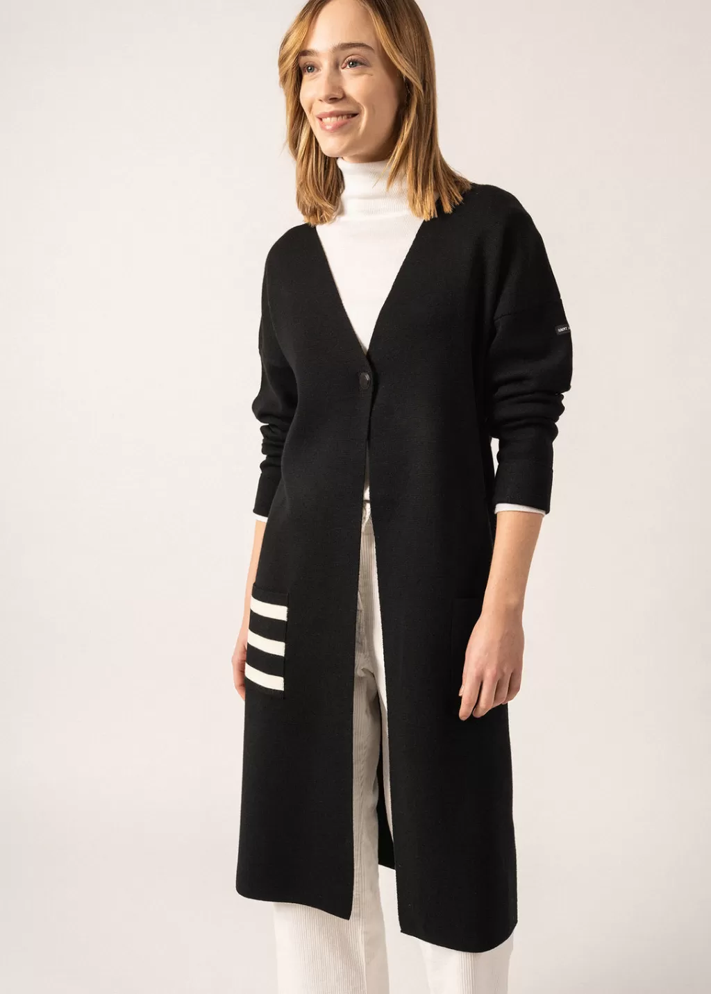 Flash Sale Saint James Cirrus Long Wool Gilet Noir/ecume