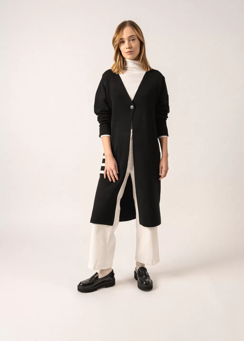 Knitted in wool, the Cirrus long cardigan was imagined in collaboration with Parisian stylist Isabelle Ballu. We love its clean and feminine cut, highlighted by its stripes placed on the right pocket. A foldover at the cuffs nicely finishes this piece with timeless elegance.- Vest/Jacket