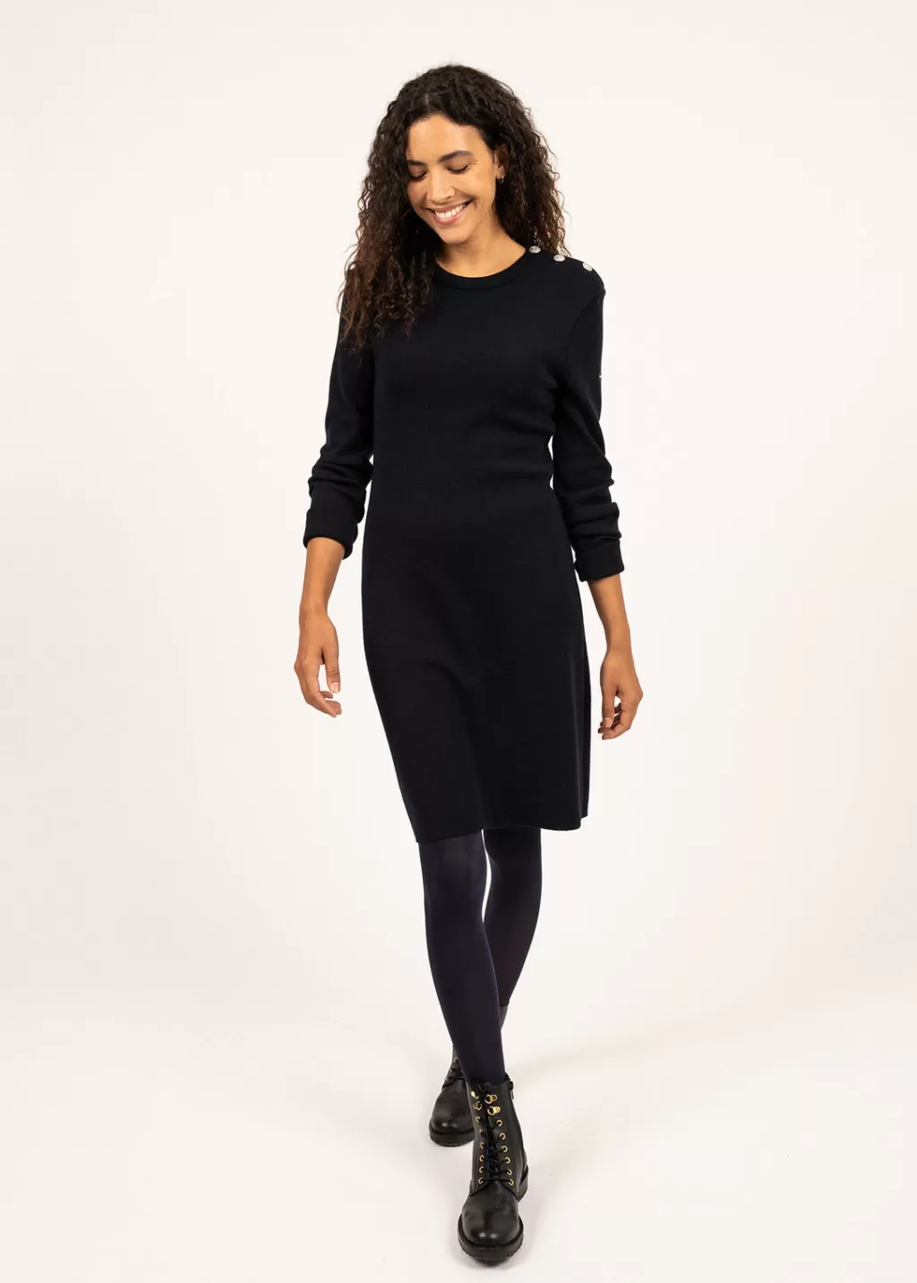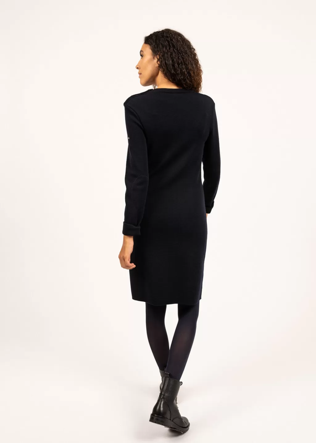 Knitted in our Atelier, the Grande Marée dress is made in merino wool. Inspired by our iconic sailor jumper, it is a timeless, elegant piece, for a feminine look.- 1×1 rib knit