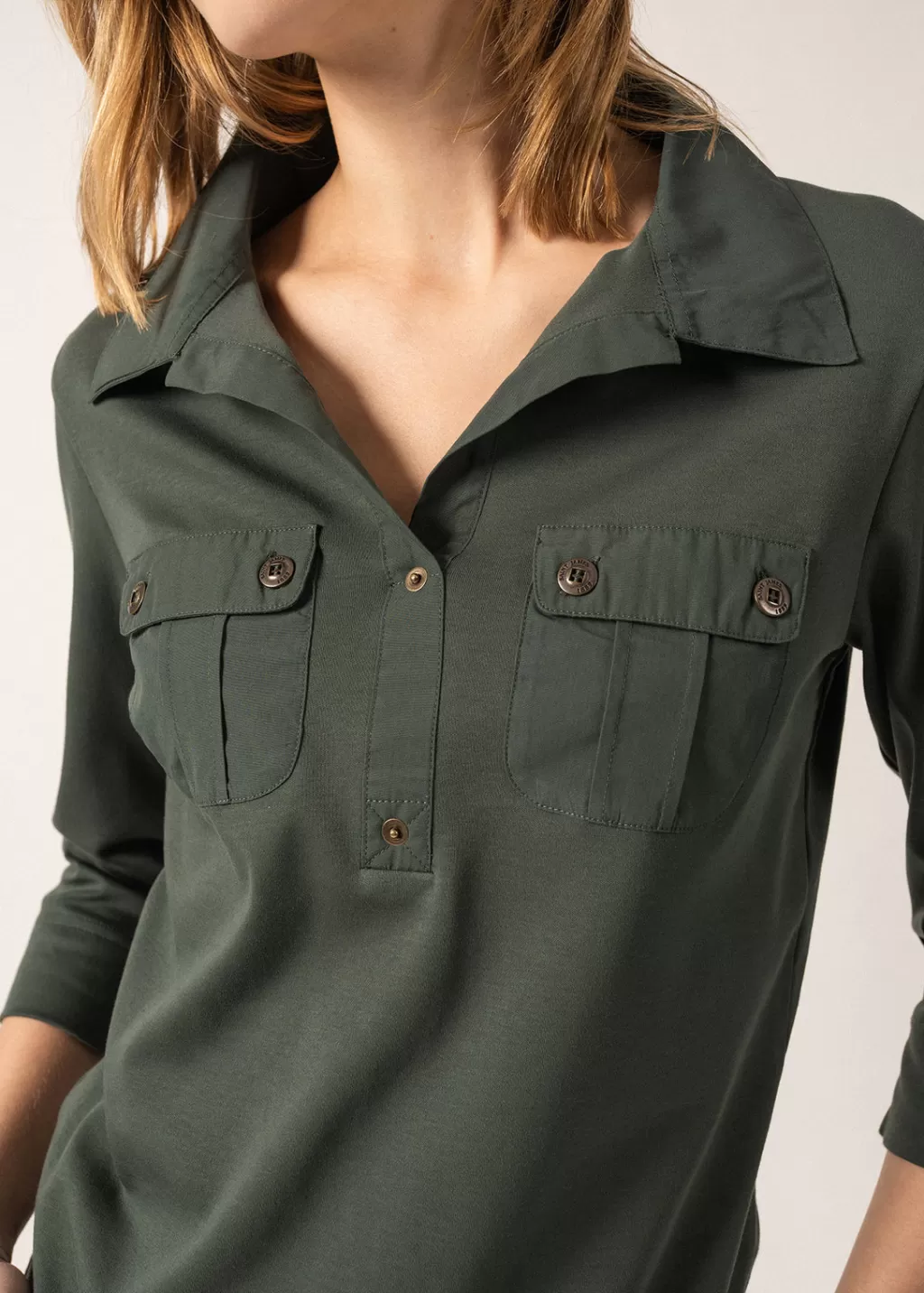 With its canvas panels and aged metal details, Oleron is an elegant, sober polo shirt, easy to match and very comfortable to wear.- Interlock