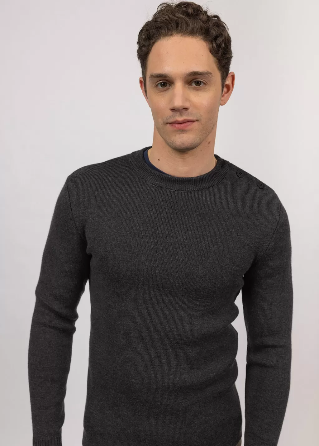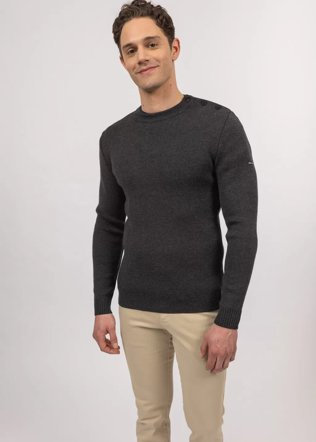 Ideal for those who love the charm of the authentic sailor sweater but seek more comfort, the Rochefort sailor sweater is both traditional and comfortable. Made of merino wool, it is soft, warm, and breathable. Its cut follows the codes of the classic sailor sweater: a ribbed round collar, buttoning on the shoulder for easy donning, a 1×1 rib knit, and a length that protects the back, even when bending over.- 1×1 rib knit