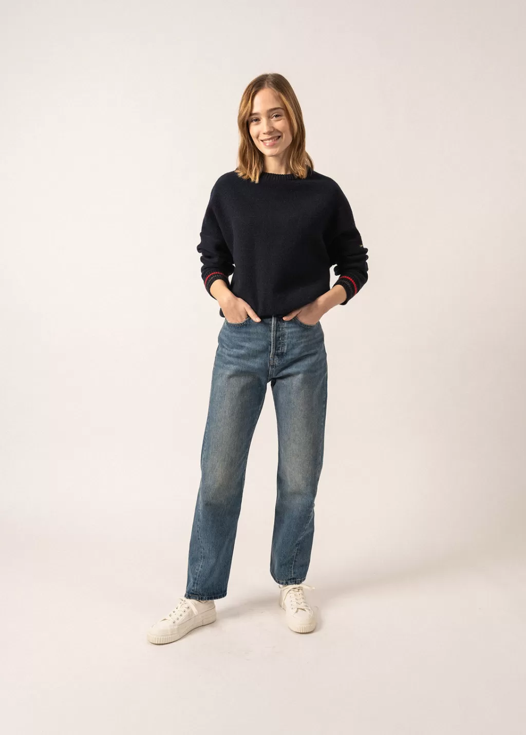 The sweatshirt, SAINT JAMES style! Crafted in wool in our Ateliers, the Sélune jumper is inspired by sweatshirts, and offers them in an elegant version, 100% wool. At the hem and cuffs, ribbing adds volume and structure, for a chic look with a touch of relaxation!- “The SAINT JAMES Sweatshirt”