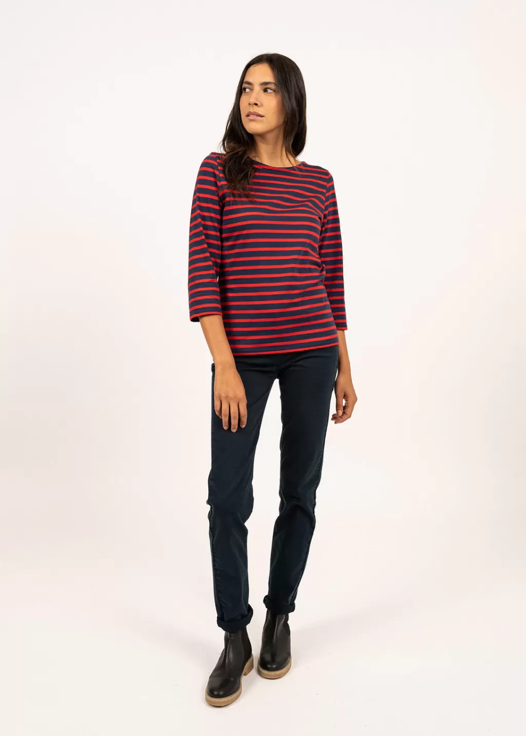 Galathée is a striped sailor shirt, designed to fit women’s body. With its slim fit and 3/4 length sleeves, it can be worn in many occasions, for an effortless, casual-chic look.- Jersey