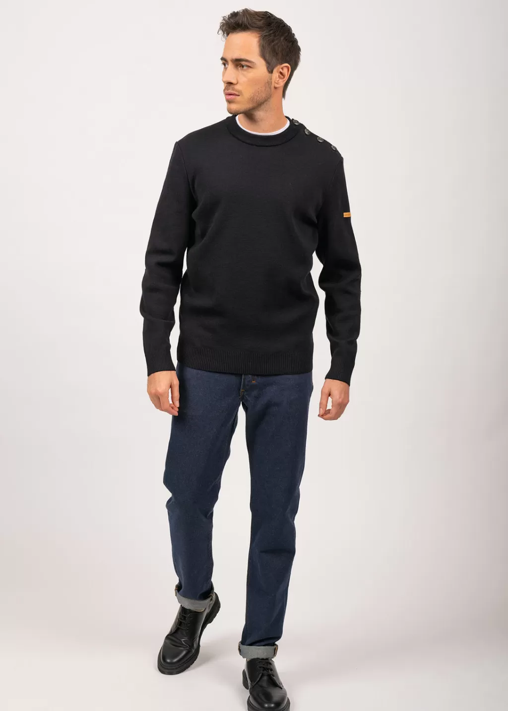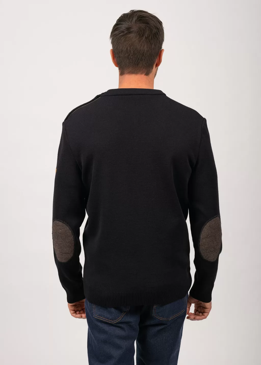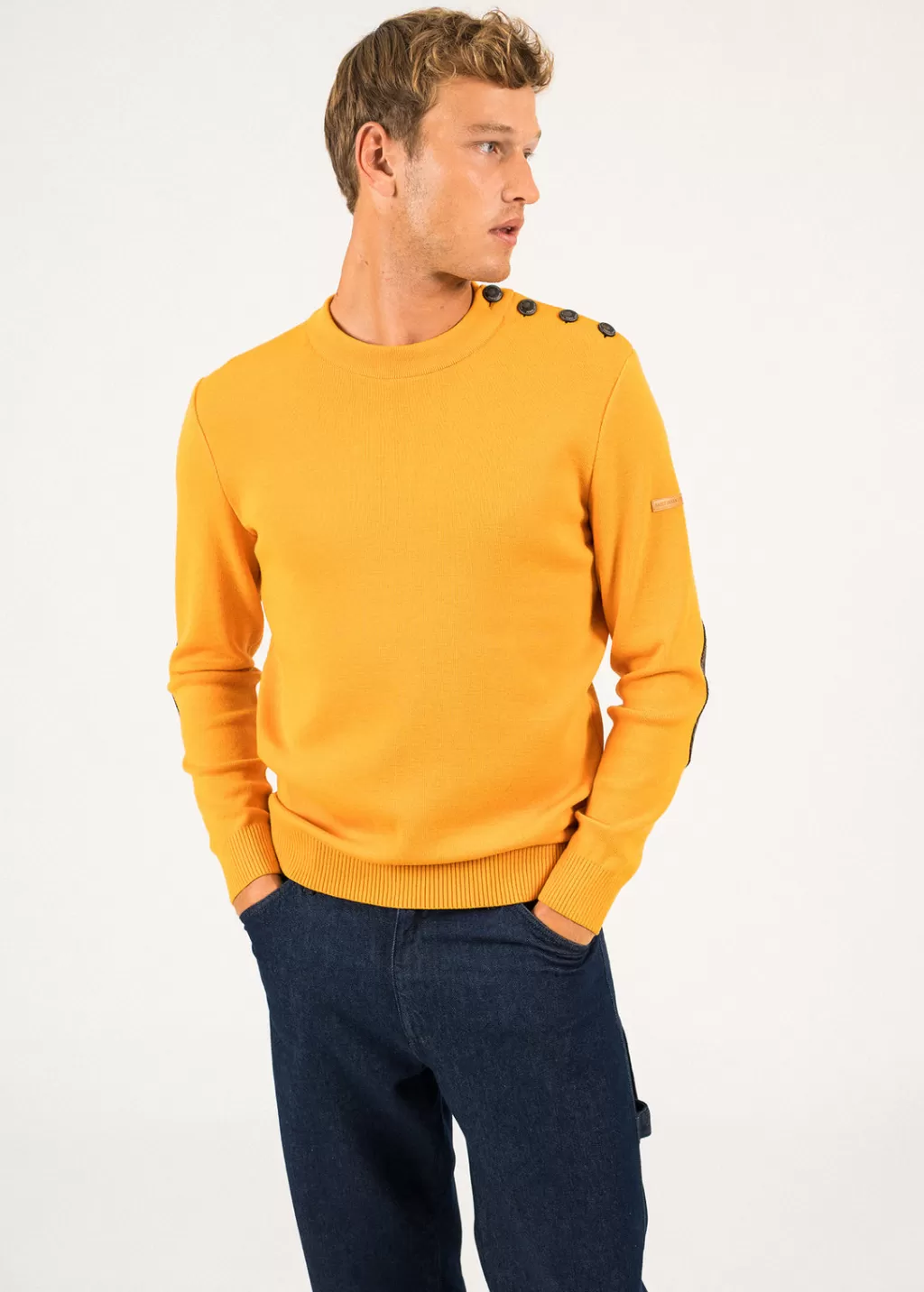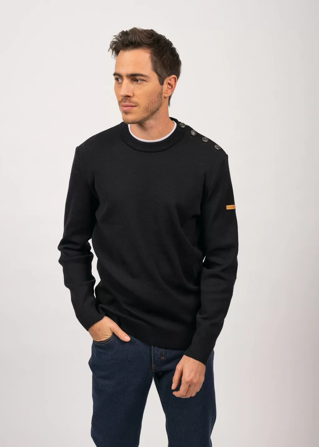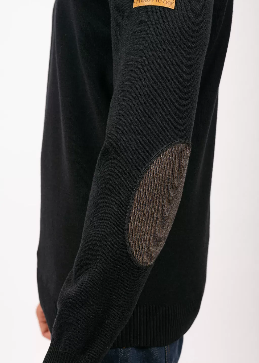 Designed in collaboration with Atelier Tuffery, the Patrimoine jumper celebrates the know-how of our two brands. Knitted in Merino wool, this sailor inspired jumper features the traditionnal codes of the model : a round neck, a 1×1 rib knit and a shoulder button tab. On the sleeves, indigo/hemp elbow patches are a reminder of Atelier Tuffery’s know-how.null