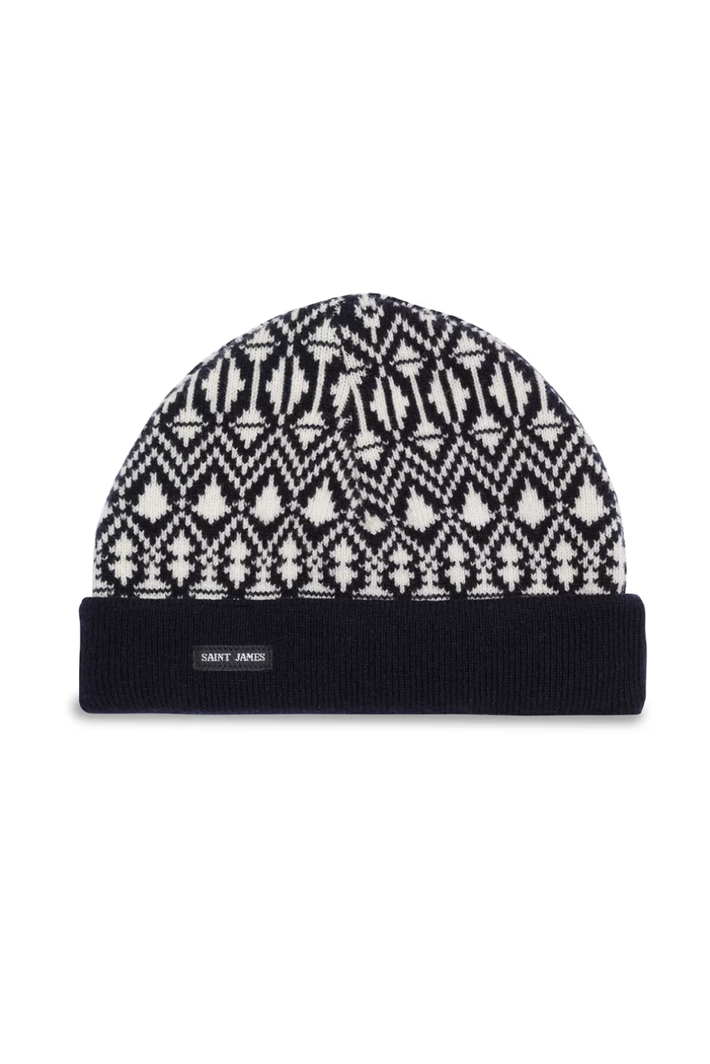 Sale Saint James Escapade Jacquard Wool Beanie Navy/ecume