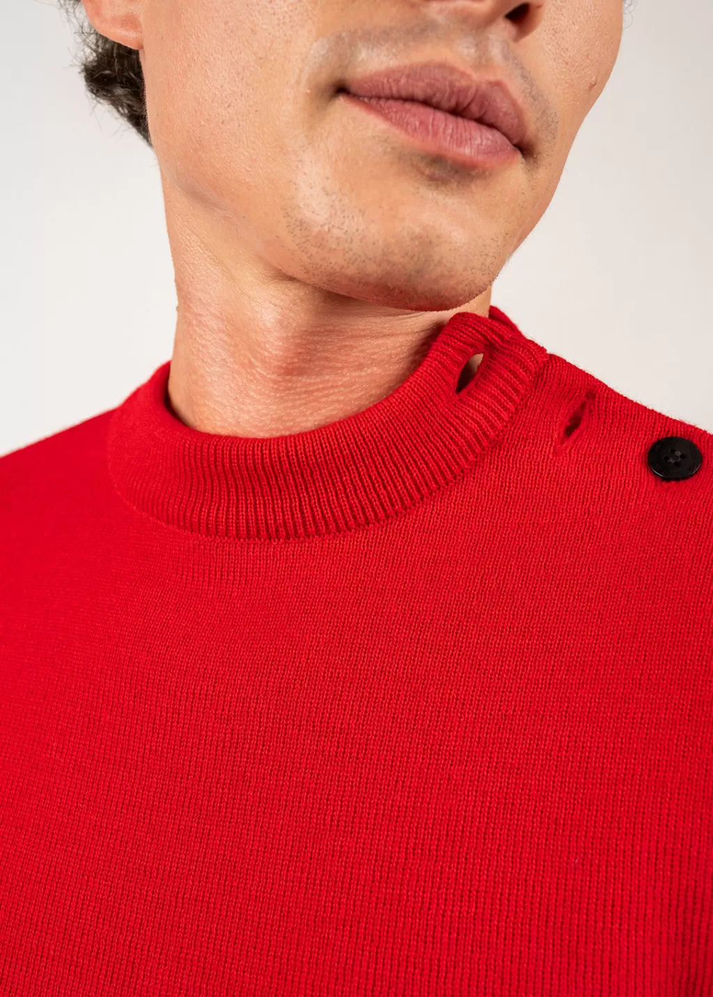 An essential piece, the sailor jumper is the garment that made SAINT JAMES famous. The authentic Matelot model is made in our workshops in Normandy, in Saint-James. It gathers the traditional elements of the sailor jumper that accompanied sailors to Newfoundland: a very tight knit, making it almost waterproof, a buttoning on the left shoulder for easy donning and keeping the neck warm, a length allowing to protect the back when bending over, and a composition of 100% untreated virgin wool.