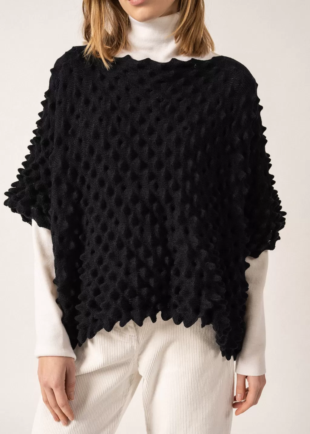 Derived from our Alvéole scarf, the Alvéole Poncho is a wool poncho, knitted in honeycomb stitch, fluffy and comfortable. A perfect fashion accessory, it will add a stylish touch to your outfits while keeping you warm for the winter.- Honeycomb stitch poncho