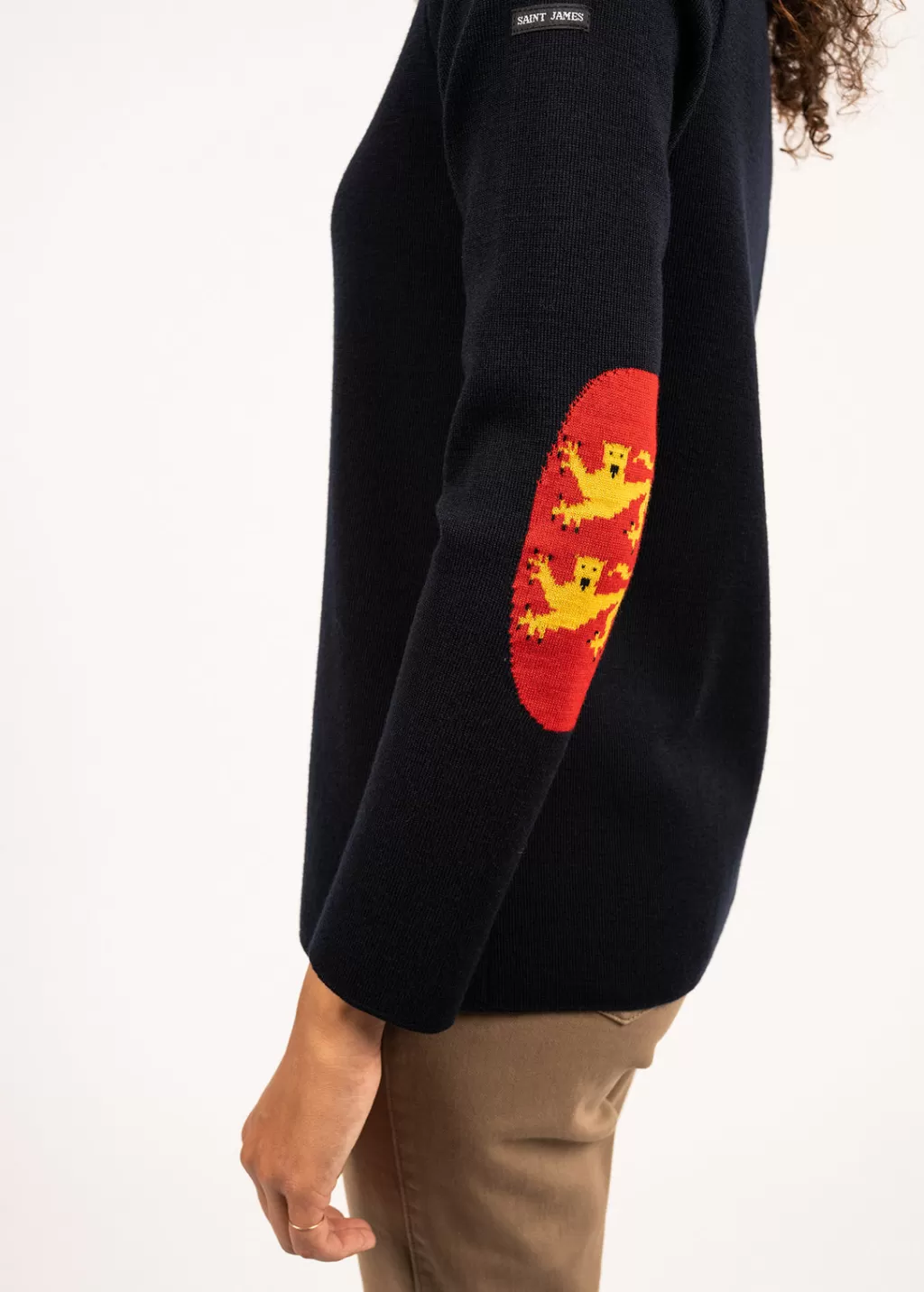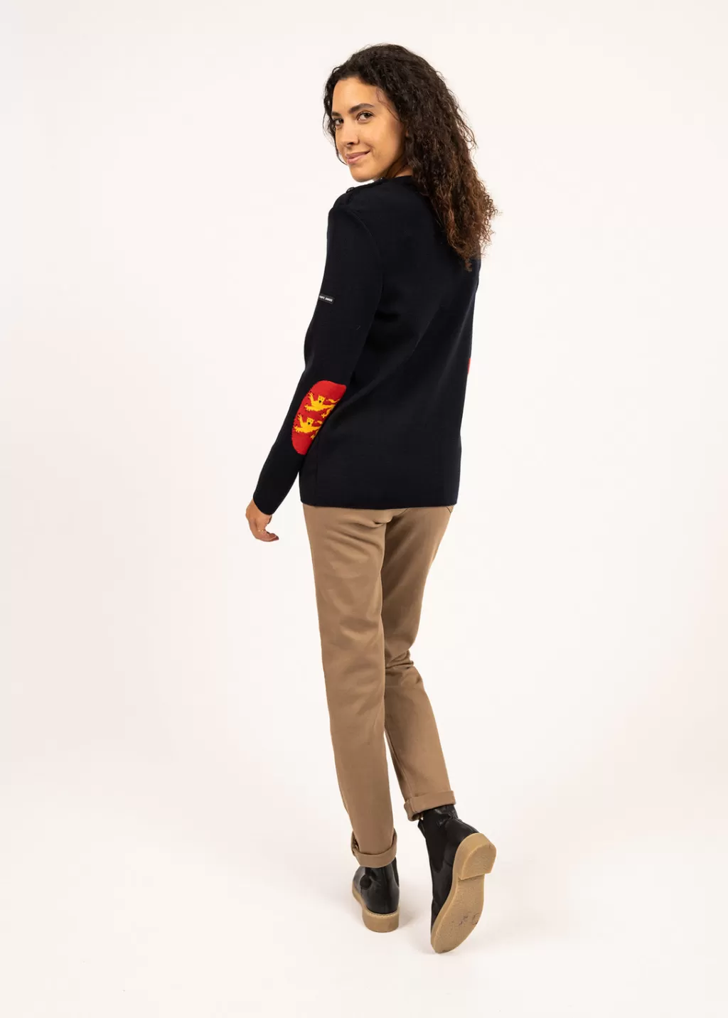 Made in our Ateliers, the Brégançon jumper is a wool jumper with jacquard elbow patches with a Norman flag pattern. A jumper inspired by the nautical wardrobe, with a sober and timeless look, offset by its set of elbow patches.- 1×1 rib knit