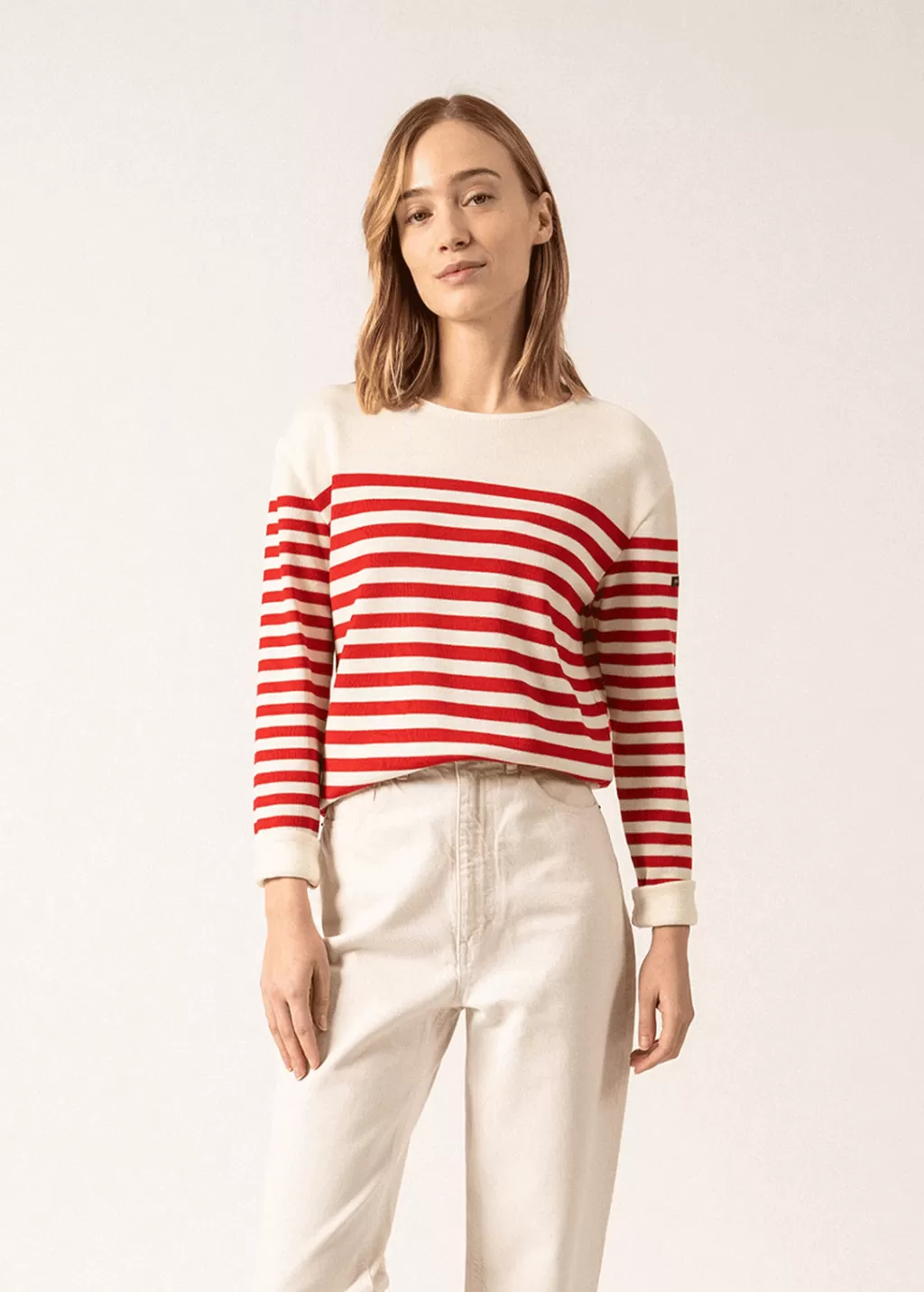 Inspired by our iconic sailor striped shirts, the Ecrins jumper is a striped jumper, made in our Ateliers. Knitted in the same soft and fine wool as our Marée jumper, it is both light, comfortable and warm. A lovely piece to transition from summer to winter and stay striped!- Winter jumper/mariner