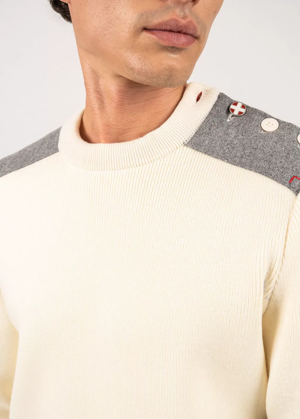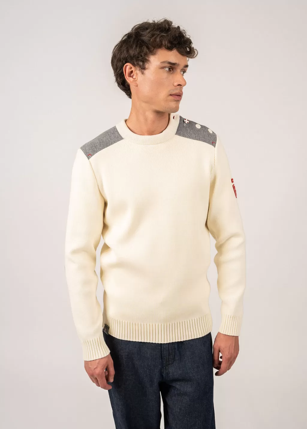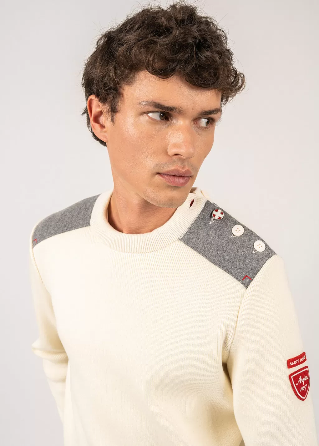 Born from the collaboration between SAINT JAMES and Arpin 1817, the Moraine Arpin jumper celebrates our shared values : quality products, made in wool, and crafted with respect for the people.The Moraine Arpin is a wool jumper, inspired by the design of our traditional sailor jumpers. We like the elbow patches and shoulder yokes in Arpin’s wool canvas, as well as its remeshed round neck and shoulder buttoningA timeless, chic piece, made in France in our Ateliers in Saint-James.- 1×1 rib knit