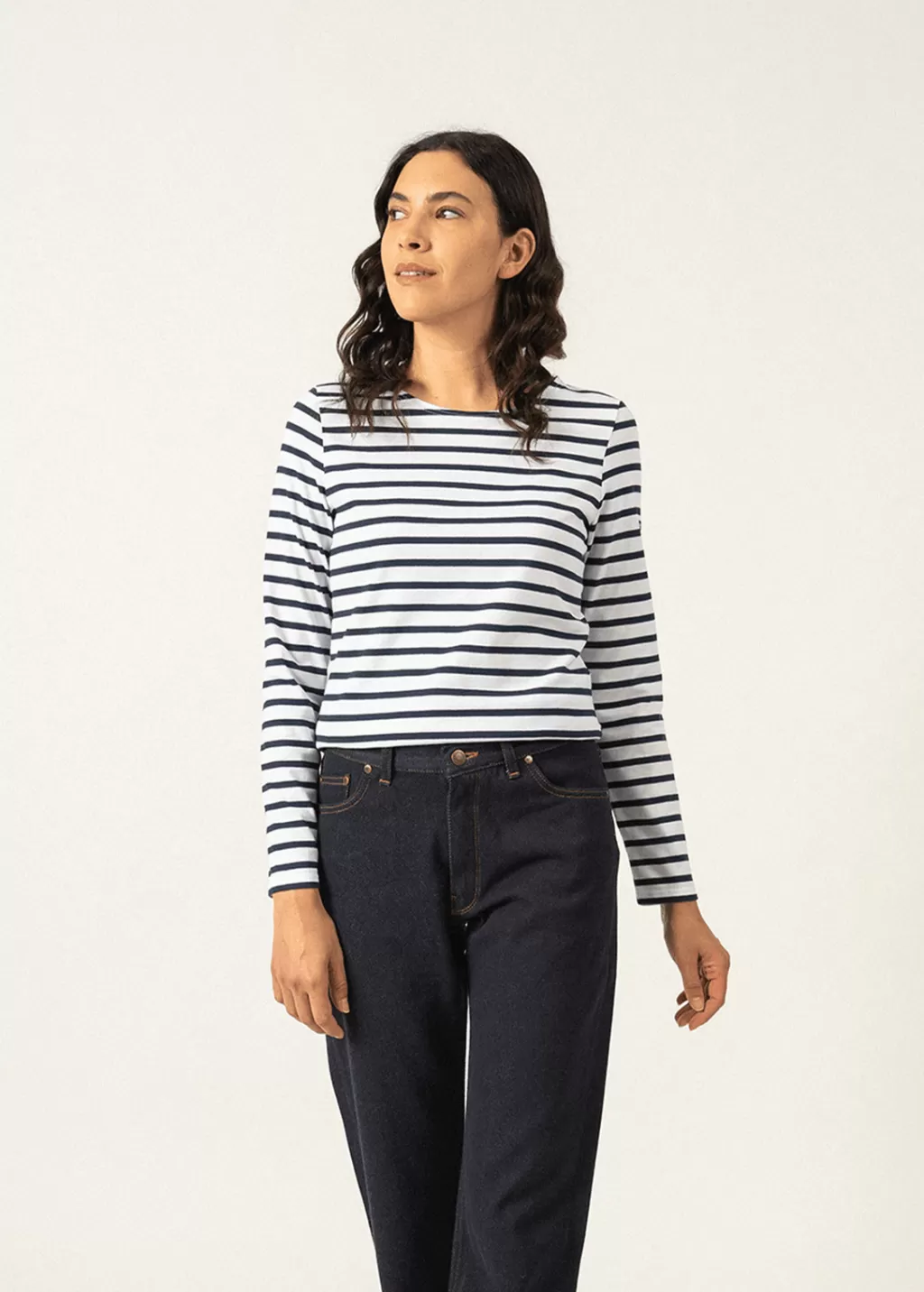 Feminine version of our iconic Minquiers, the Minquidame sailor striped shirt is a light, comfortable shirt, made in cotton. Its timeless stripes bring a casual but yet chic style to the piece.- Jersey